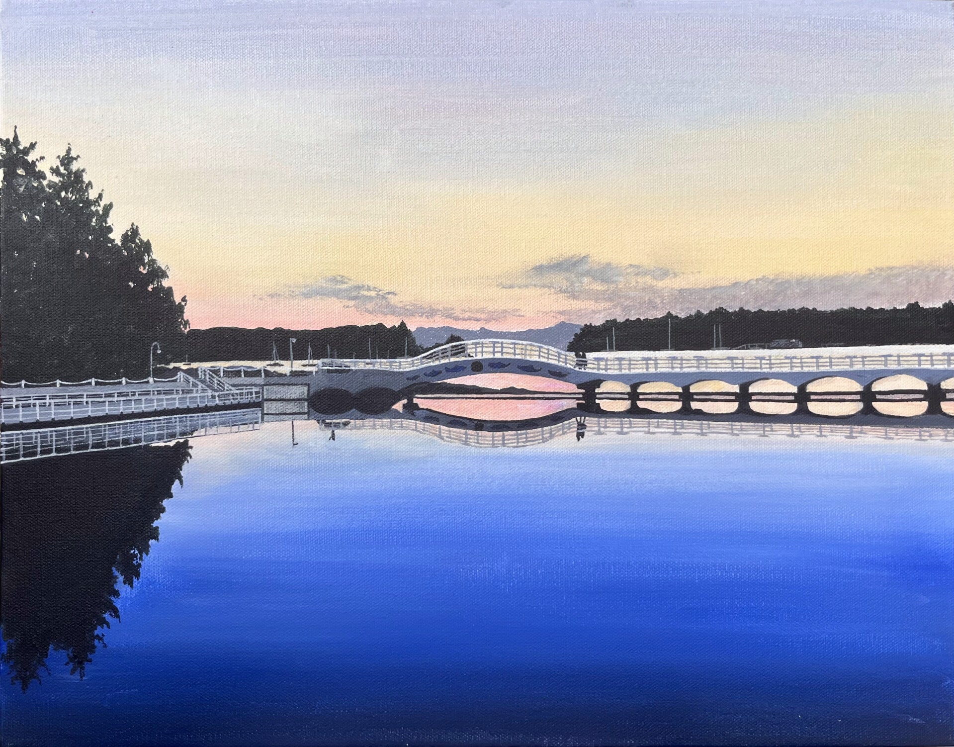 I painted this piece live while participating in my first market in Maffeo Sutton Park. I especially enjoy the vibrant evening sky.